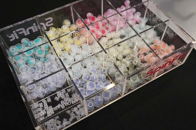 SpinFitは発売前の新シリーズ「WAVE」をいち早く試せる機会を設けた。軸部にダブルウェーブ(波型)の加工が施され、独自の3Dクッション構造と医療用シリコンを組み合わせることで、高い装着感・フィット感と音質を両立したというモデルで、整理券で10人を超える待機が常にできるほど、多くの来場者の関心を集めていた。