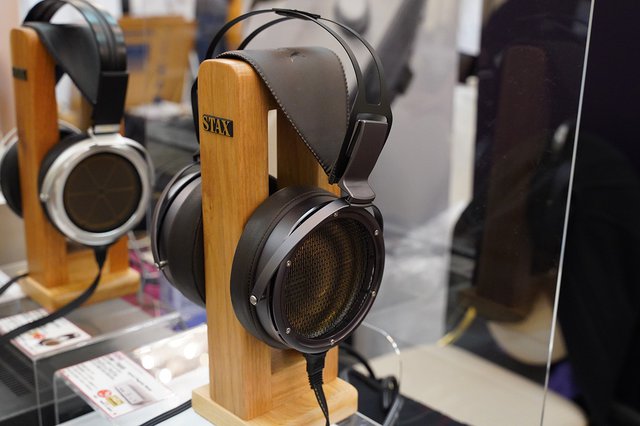 STAXブースでは、同社イヤースピーカー(静電型ヘッドホン)のフラグシップモデル「SR-X9000」を出展。2021年10月に発売した本モデルは、新開発の固定電極や従来よりも大口径化を進めたスーパーエンプラフィルム製振動膜などを搭載。前フラグシップモデル「SR-009S」を越える音質を実現したとしている。