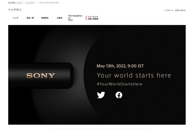 ソニーは、同社ヘッドホン製品ページにてティザーサイトを公開。日本時間の2022年5月13日9時に、何らかの発表を行うと明らかにした。