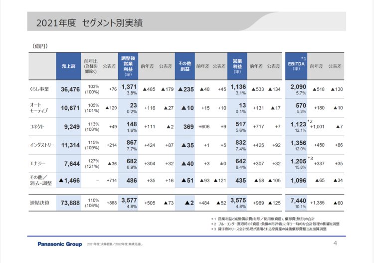パナソニック、2021年度決算は増収増益。純利益は前年比55%増