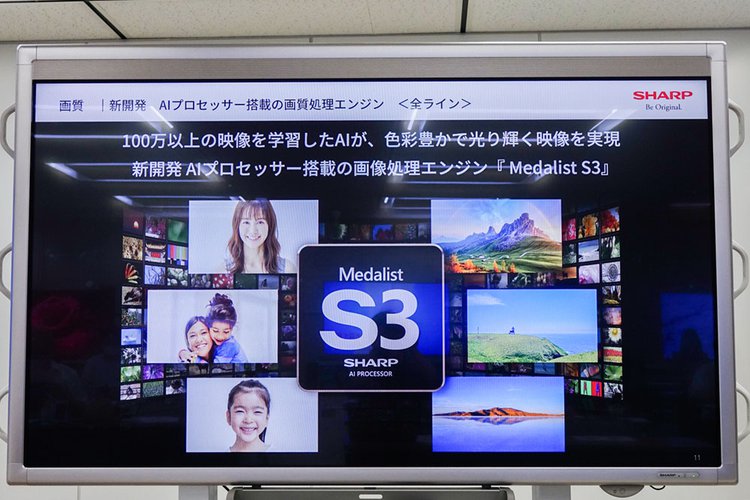 新開発のAIプロセッサーを採用した画像処理エンジン「Medalist S3」を採用する液晶テレビ。同様の新エンジンを搭載するモデルとして、4K有機ELモデル「ESシリーズ」「EQシリーズ」、4K液晶モデル「EUシリーズ」「ENシリーズ」も合わせて発表されている。
