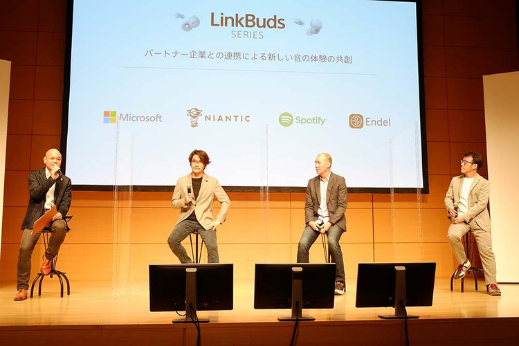 また株式会社ナイアンティックの代表取締役社長 村井説人氏、スポティファイジャパン株式会社 代表取締役 トニー・エリソン氏が登壇。村井氏はLinkBuds Sは「穴が空いていないので外音がどれくらい取り込めるのか興味を持っていた。ものすごくキレイな音で取り込んでくれる。ノイズキャンセリング機能も優秀で、出張で使わせてもらった際に、空港では外音を取り込み、飛行機のなかでは外音がノイズになってしまうのでノイズキャンセリングを使うといった、使い分けができるのが嬉しい」とコメント。