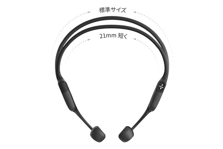 OpenRun Miniは、Shokz製骨伝導ワイヤレスイヤホンのスタンダードモデルにあたる「OpenRun」をベースとした小型モデル。OpenRunの性能はそのままに、ネックバンド部分を約21mm短く設計している。なお質量は約26gで、OpenRunと同様となる。