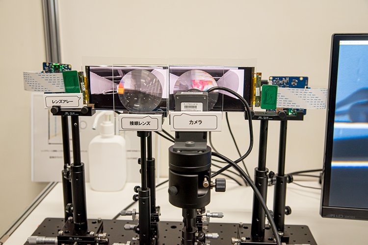 そこで、3次元映像をディスプレイの外側に虚像として形成させる小型の光学系を新たに設計、開発することで、レンズアレーと接眼レンズの間の距離を短縮に成功。一般的なHMDのサイズに落とし込むことができたとのことだ。