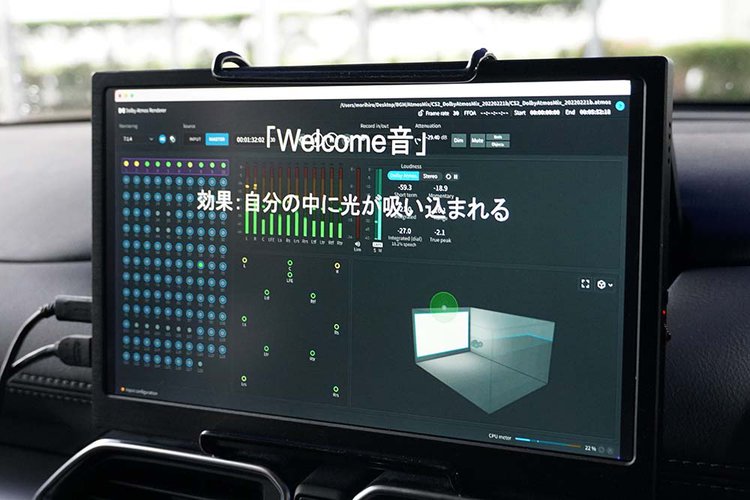 用意された試乗車に乗り込み、そのサウンドを体験した。ドルビーアトモスのデモコンテンツや、BTS「Butter」のように動きのある音源を聴いたが、特に印象深かったのが、一般的なクルマのオーディオらしからぬ定位だ。作り込まれていないカーオーディオでは、はっきりとフロントドアのスピーカーから音が鳴っていることがわかるのだが、それがない。