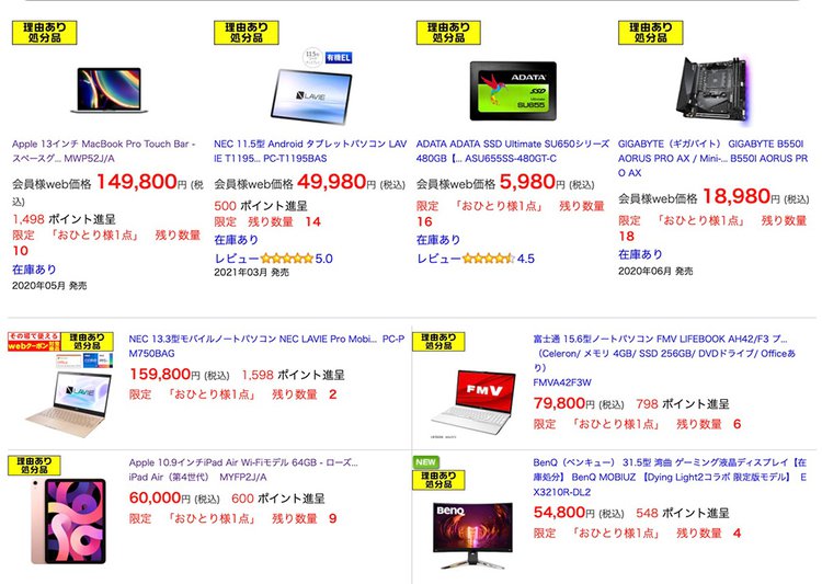 さらにイヤホンでは、ソニーのながら聴きイヤホン「LinkBuds」が安い。パッケージ不良などはあるが、話題のモデルが安価に買えるのは嬉しい。ぜひチェックしてみよう。