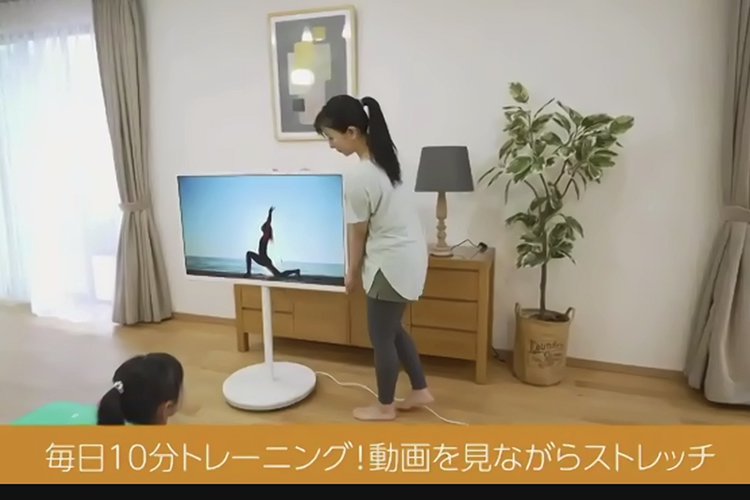 “レイアウトフリーテレビ”「TH-43LF1」は設置場所を固定せずに利用できるため、家族で食事をする際にダイニングで、休日に動画を見ながら運動する際は広いリビングで、と自由に使うことができる。また背面デザインにもこだわれており、シンプルでフラットなデザインは、掃除もしやすく魅力の一つでもあると説明する。