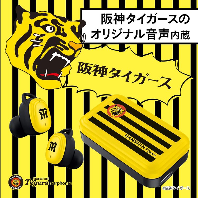 ハウジング部には阪神タイガースのチームロゴ、充電ケースには“トラの顔”をあしらった、阪神タイガースファン垂涎の完全ワイヤレスイヤホン。電源オン時とイヤホン接続時にはトラの鳴き声、着信時には「ラッキーセブン」で通知するオリジナル音声を収録する。