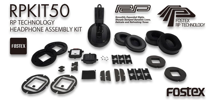 製品内容は、半完成本体、イヤーパッド2種類(合皮/ベロア)、RPドライバーユニット、各チューニングシートのほか、2.5 - 3.5mmアンバランスケーブル(2m)、2.5 - 2.5mmアンバランスケーブル(1.2m)、3.5 - 6.3mm変換コネクターなどを同梱。ドレスアップ用のFostexロゴステッカーも付属される。