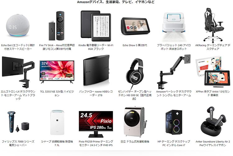 そのほか、Amazonデバイスも「Echo Dot」「Fire TV Stick(第3世代)」、Kindle リーダーなどいつも通り充実。お持ちで無い方は普段よりお買い得なこのタイミングにチェックしてみてはいかがだろうか。