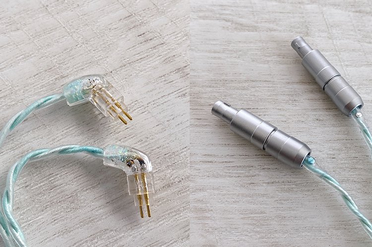 イヤーコネクタ部には、ケーブルカラーに合わせた特殊オパール装飾、ヘッドホンケーブル仕様のイヤープラグにはスワロフスキー装飾(いずれもL=ホワイトカラー/R=アクアマリンカラー)を施している。また追加オプションとして、ロゴ部分にオーロラアートワーク、および本モデル限定のジュエリーストーン「高品質アクアマリン装飾」を好みで選択できる。