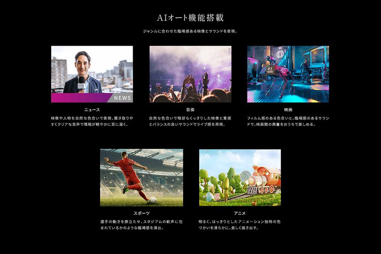 また、同社独自の「AIオート機能」により、映像ジャンルに合わせて画質と音質を自動的に調整。例えば、ニュースであれば映像を自然な色合いに、音声を聞き取りやすくクリアに調整。映画であれば映像をフィルム感のある色合いに、音声を映画館のような立体感あるものに調整するとのこと。AIオートの映像に、ユーザーそれぞれの好みを反映できる「かんたん映像設定モード」も搭載する。