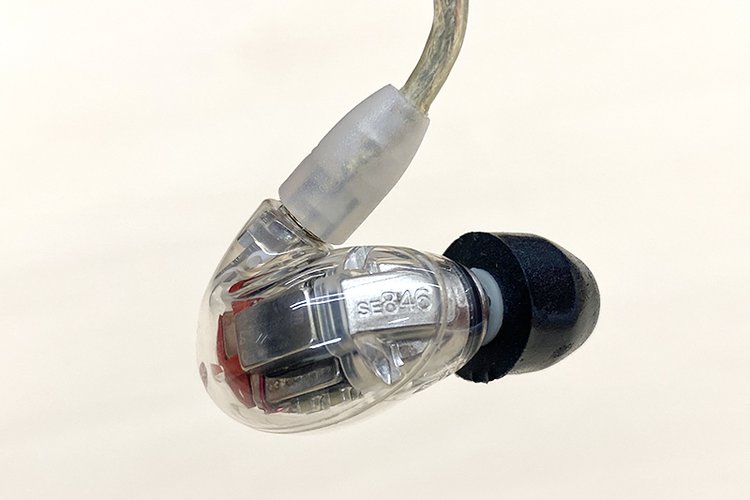 SE846は同社有線イヤホンSEシリーズのトップモデル。3ウェイ4ドライバー構成で、低音域に2基、高音/中音域に1基ずつのBAドライバーが割り当てられる。内部には10枚の薄いメタルプレートを貼りあわせてレーザーカッティングで成形した、独自開発のローパスフィルターを搭載する。
