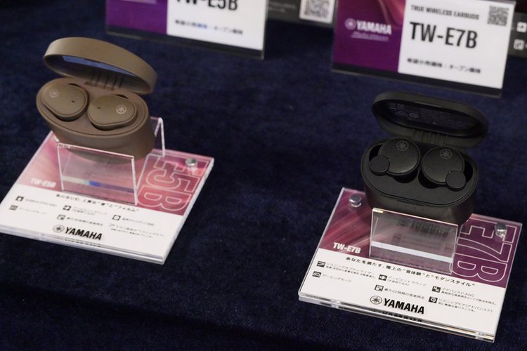 ヤマハブースでは、発売中の完全ワイヤレスイヤホン「TW-E7B」「TW-E5B」の2機種も出展。こちらは整理券不要で一度に2名ずつ試聴が可能となっていた。