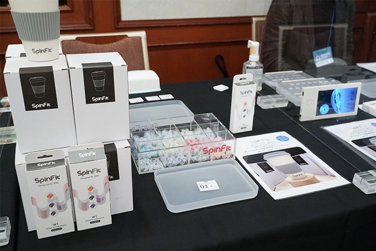 Spinfitのブースは、最新シリーズ「W1」を中心に、同ブランドのイヤーチップが全種試すことができた。