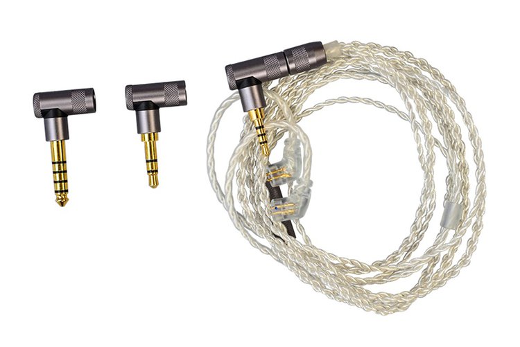 ケーブルには、取り回しがしやすくニュートラルなサウンドを実現する、3in1プラグ採用の銀メッキ銅ケーブルを使用。プラグ部は着脱可能で、3.5mm 3極アンバランス/2.5mm 4極バランス/4.4mm 5極バランスと3種類の付属プラグに変更できる。イヤホン側は独自の2pin端子を装備、長さは約120cm。