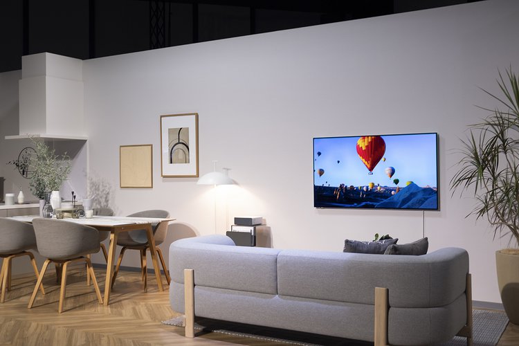 大きなポイントといえるのが、部屋の壁に馴染みやすい設計・デザインと壁掛けの簡単さだ。従来のテレビも壁掛け設置が可能だが、アンテナ線の接続が必要なことに加え、強固な壁掛け金具を使う必要があるうえ、テレビ自身や壁掛け金具の厚みにより壁からせり出すような見た目になっていた。