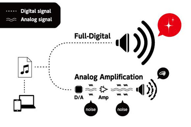国産チップ「Dnote」と特注マルチコイルスピーカーを組み合わせ、オーディオ信号を入力から出力までデジタルのまま処理するフルデジタル方式を採用。一般的なDAコンバーターとアンプを組み合わせる方式に比べてノイズを抑えられ、また高い電力効率によりUSBバスパワーながら大音量の出力が可能だという。なお、Dnoteの開発/生産がすでに終了していることから、LOGも完売後の増産/一般販売は行わないとのこと。