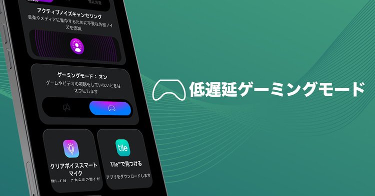 また、音声と映像のズレを軽減する「低遅延ゲーミングモード」や外部音取り込みモードも搭載。ゲーミングモードのオン/オフや外部音の取り込み量調節はアプリから設定可能。本体にはIP55の防水・防汗・防塵性を備えるほか、Tile機能により紛失した際もアプリでの追跡や、イヤホンからアラーム音を出しての検索などが行える。