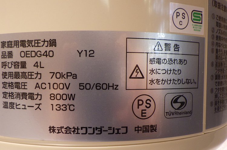 さらに、これだけでは終わらない。家庭用の圧力鍋・圧力釜は、消費生活用製品安全法の「特別特定製品以外の特定製品」に指定されており、国が定めた安全基準に適合していることを示す「PSCマーク」の付いた製品でければ国内で販売することはできない。さらに、一般財団法人製品安全協会が定めた安全基準に適合していることを認証された製品には「SGマーク」が表示される。