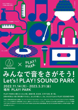 オーディオテクニカは、東京都・立川市の子供用屋内広場「PLAY! PARK」とのコラボレーションで、音を楽しむ創作遊具やワークショップを体験できるイベント「みんなで音をさがそう! Let’s! PLAY! SOUND PARK」を11月14日(月)より開催する。期間は2023年3月31日(金)まで。