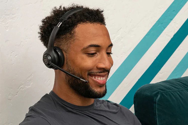 リモートワークに便利な機能を各種搭載したというヘッドホン。ワイヤレス/有線接続の両対応で、2台同時接続可能なマルチポイントや、高性能ブームマイクを備えている。