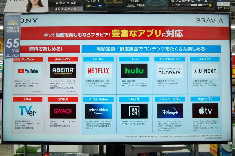 今、テレビのトレンドとして見逃せないのが「ネット動画配信」。テレビ買い替えへの大きな購買動機となっている。「テレビのネット動画配信に関する問い合わせが本当に多いですね。有名なサービスなら対応のテレビにはほぼ搭載されていますが、マイナーなサービスを希望して、搭載されている限られた機種の中から絞り込まれるケースも見受けられます」ともはや必須条件。「テレビ市場に起こった大きな変革と言えます」と指摘する。