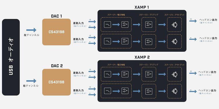 “Sound Blasterシリーズ” としては初めて、シーラスロジック製DACチップ「CS43198」2基によるデュアルDAC構成を採用。加えて、同社独自のAB級「XAMPヘッドホンアンプ」も2基搭載。DA変換から増幅、出力にいたるまで、左右チャンネルを完全にセパレートしたフルバランス設計を実現した。これにより、オーディオ愛好家の厳しい要求にも応えられる滑らかな音質、高感度のインイヤーモニターから600Ωのヘッドホンまでドライブできる駆動力を確保したとする。