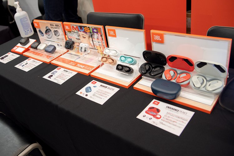 JBLは1Fと2Fにそれぞれブースを用意。2Fでは近々に発売された完全ワイヤレスイヤホンを中心とした展示・試聴を実施していた。