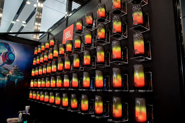 1Fでは同社のゲーミングブランド “JBL Quantum” のゲーミングヘッドセット「Quantum 910 Wireless」を全面にフィーチャーしつつ、149基のLEDユニットを搭載する「PULSE 5」などポータブルスピーカー系の製品を多数展示していた。