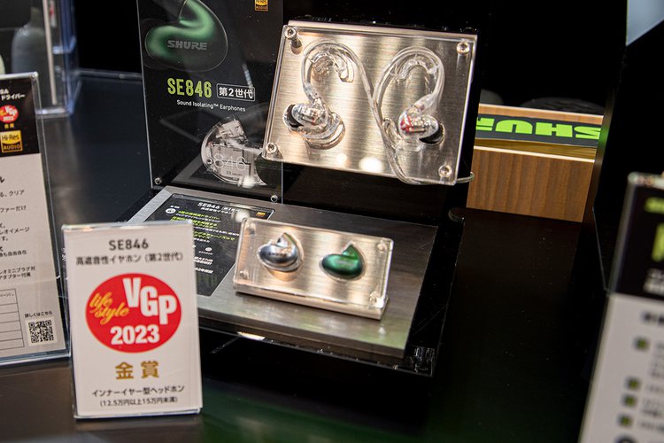 1Fに出展するShureブースでは、「SE846 第2世代モデル」や、「SE215 Special Edition」の新色パープルといった今年発売の新アイテムを中心に、既存のラインナップを多数展示。
