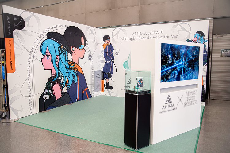 ほか、1Fには今回のイベントメインビジュアルにも採用されたANIMAの完全ワイヤレスイヤホン「ANW01 Midnight Grand Orchestra Ver.」をフィーチャーしたブースを用意。同製品を取り扱う2Fのピクセルブースでは、試聴することも可能だ。