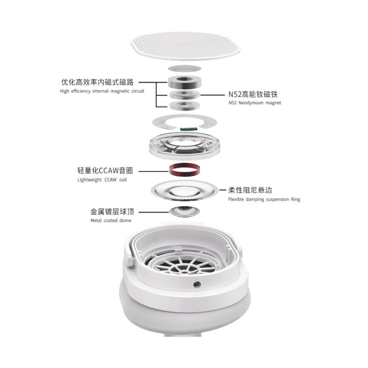 複合式高周波導波構造を採用し、グリッドマグネットアレイが高周波音波の伝達に与える位相干渉を可能な限り抑制し、磁気回路の体積や能率への悪影響を回避する。