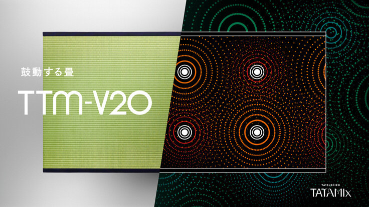 0〜2歳の子どものためのエリア<小さなお皿>に新たに登場する「空飛ぶ魔法の畳」は、畳の中に振動スピーカーを内蔵したTTM-V20を用いて、畳から感じる音や振動、感触や匂いなどを五感を使ってフィジカルに体感することで、子どもたちの多様な感性を育むことができるというコンテンツ。