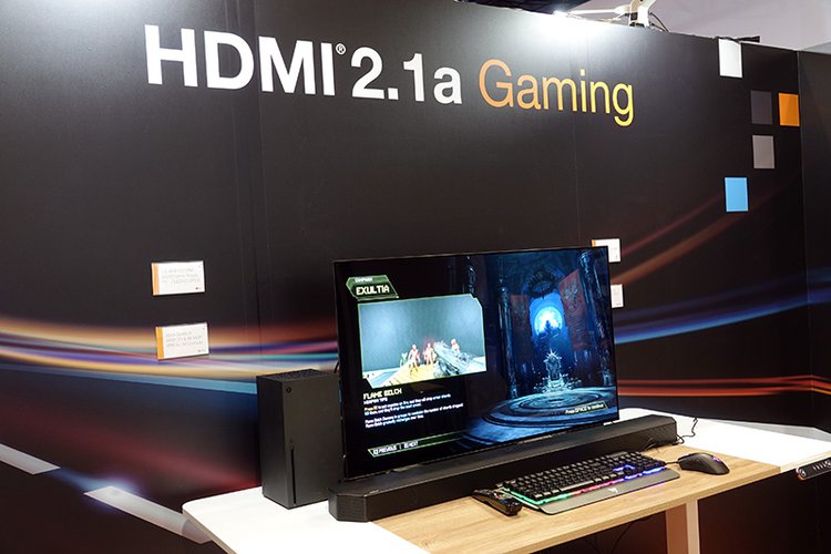 また、「HDMI 2.1a Gaming」と名付けた展示も披露。こちらでは、「Xbox Series X」やゲーミングPCを、LGの4K有機ELテレビ「OLED42C2PUA」と、ドルビーアトモスやHDMI eARC対応のサムスン製サウンドバー「HW-Q910B」とともに展示し、昨今流行するゲーミングの世界におけるHDMI規格の活用例をアピールしている。