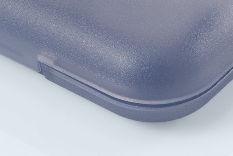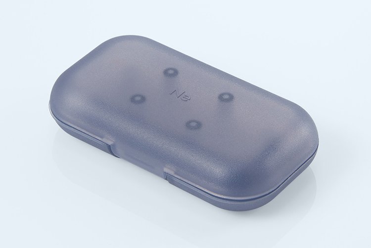 ケース表面には、心地良い手触りのシボ加工を施し、汚れや傷も目立ちにくい。形状は丸みを帯びて手に馴染み、コンパクトなポータブル設計のため持ち運びにも適している。ケースサイズは72W×16.5H×40.3Dmm。