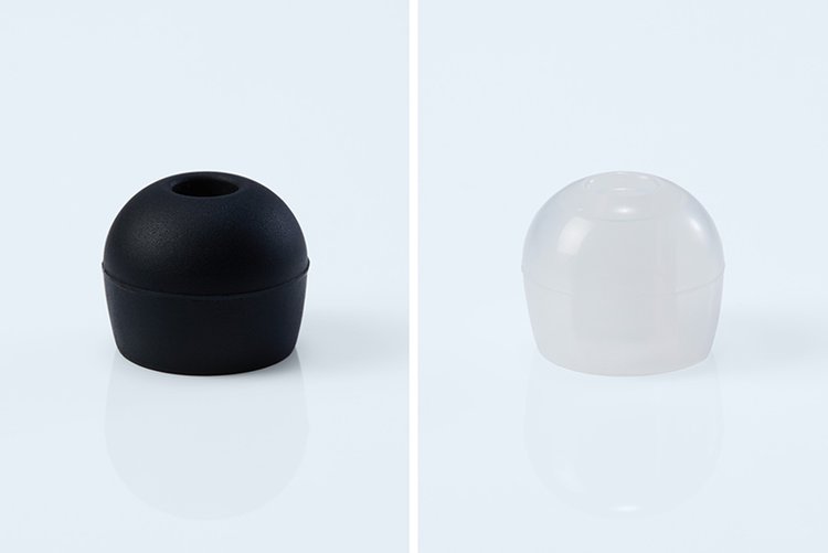 サイズはXS/S/M/Lの全4種類を各1セットずつ同梱し、耳穴の大きさや装着感に合わせて選択可能。さらに、マットな質感でさらっとした装着感の「ブラック」と、光沢質感によって高い密閉性が得られる「クリア」の2種類の質感をラインナップする。適応ポートサイズはΦ5.4×L2.3mm以上。
