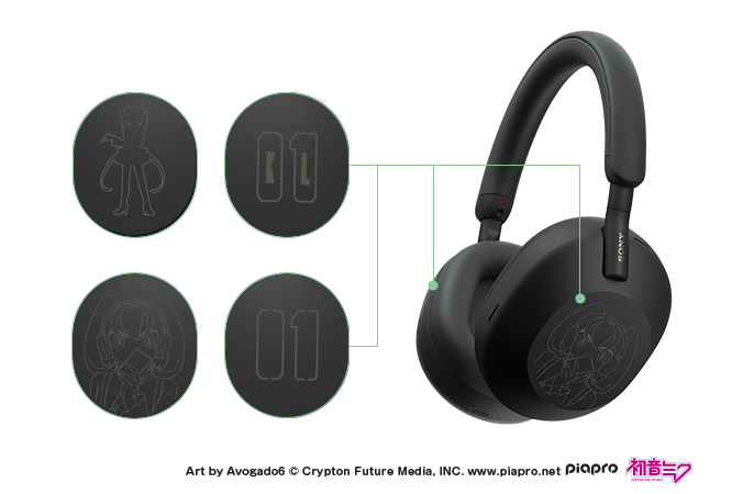 本コラボモデルでは、イラストレーターの「アボガド6」が特別に描き下ろした、人気キャラクター・初音ミクのオリジナルイラストを刻印。ウォークマンは背面部、ヘッドホンはハウジング部分に、2種類のイラストから1つを選んで刻印することができる。
