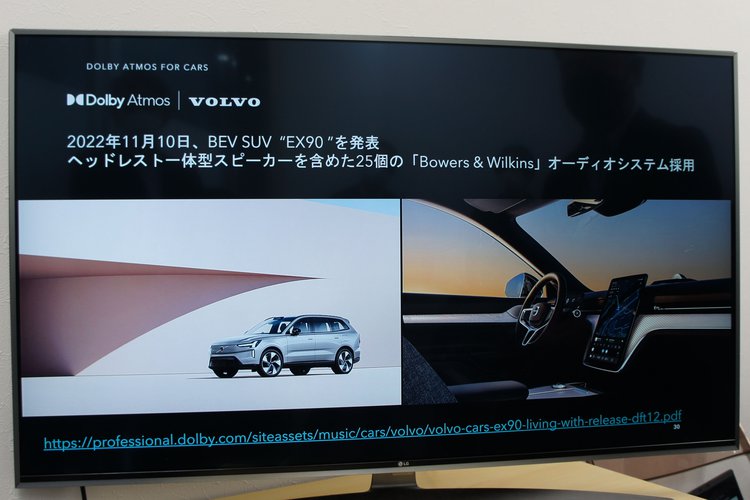 日本国内の展示会でDolby Atmos for Carsを体験できる実車を展示するのは初の試み。体験会の冒頭では、Dolby AtmosやDolby Atmos for Carsについて説明が行われた。