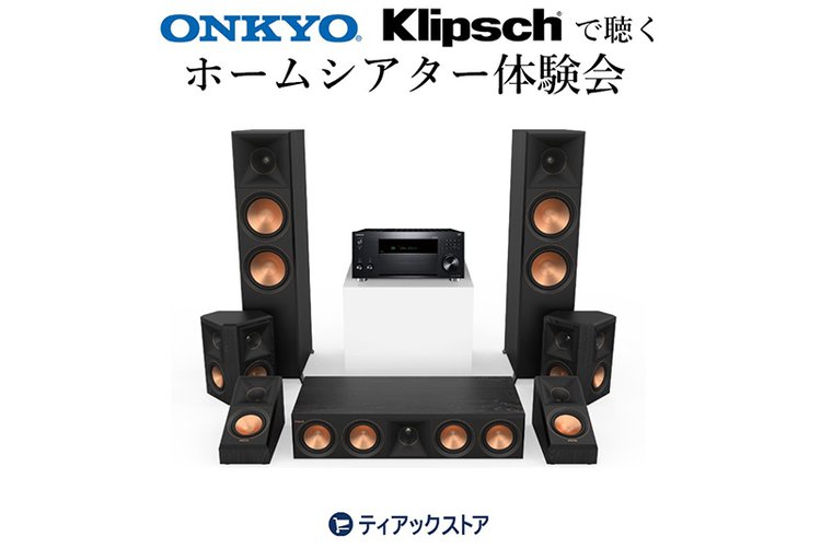 本イベントでは、オンキヨーの9.2ch AVアンプ「TX-RZ50」と7.2ch AVアンプ「TX-NR6100」の2製品を、アメリカのスピーカーブランドKlipschの最新スピーカー「REFERENCE PREMIERE」シリーズで比較試聴できる。同社は「Dolby Atmosを用いた映画館のような音の迫力を是非ご体験ください」とコメントしている。