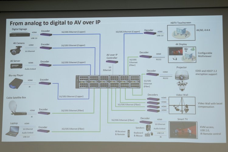 なお、ここでの「AV」は映画や音楽のみならず、映像・音声の全般を包括した言葉となる。そのためAV over IPを活用する現場はビデオ会議から教育、メディカル、スポーツなど多岐にわたる。
