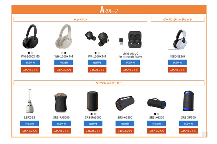 対象製品には、ヘッドホン「WH-1000X M5」「WH-XB910N」や、完全ワイヤレスイヤホン「WF-1000X M4」「WF-C500」、ながら聴きモデル「Link Buds」「Float Run」、ゲーミングヘッドセット「INZONE H」シリーズ、ワイヤレススピーカー「SRS-RA3000」「SRS-XE300」などがラインナップしている。