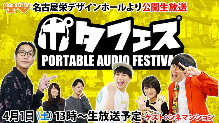 ポタフェス会場から公開YouTubeライブ配信「出張版e☆イヤホンTV」を実施。ゲストにはYouTuber「シネマンション」を迎え、映画鑑賞にオススメのイヤホン・ヘッドホンを特集する。対象のブースで製品を試聴してスタンプを4個集めると、豪華賞品が当たるスタンプラリーも開催される。