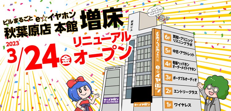 イヤホン・ヘッドホン専門店のe☆イヤホンは、秋葉原店を2023年3月24日にリニューアルオープンすることを発表した。