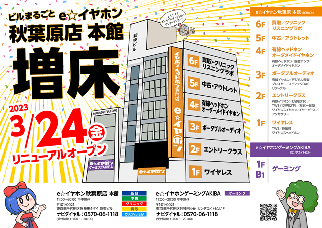 e☆イヤホン秋葉原店が3/24リニューアルオープン。売り場増床、カスタムIEM受付も本館に移動
