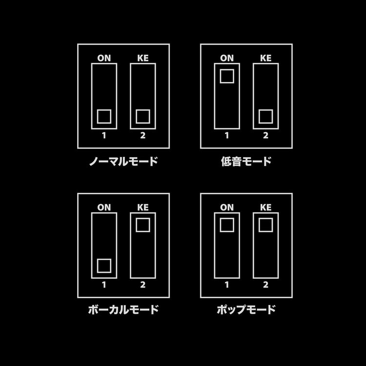 サウンドについては「Jポップやロック、ボーカル、インストゥルメンタルで高いパフォーマンスを発揮する」と説明。さらに筐体にディップスイッチを2個装備しており、組み合わせによってノーマル/低音/ボーカル/ポップといった4種類のサウンドモードを切り替えることが可能。