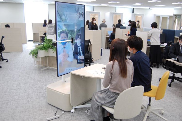 「コミュニケーション×サステナブルで新たな価値を」をテーマに、実際の製品を体感できるショールームを兼ねた環境配慮型のライブショールームオフィス。「環境配慮」「生産性・快適性の向上」「健康」の3つをコンセプトに、ポストコロナの働き方やSDGsへの取り組みを進めたのが大きな特徴だ。コロナ禍に社内のコミュニケーション欠如が課題とされるなか、「社員が行きたくなるオフィス」を目指し、同グループの総合力を活かしたさまざまな提案が盛り込まれた。
