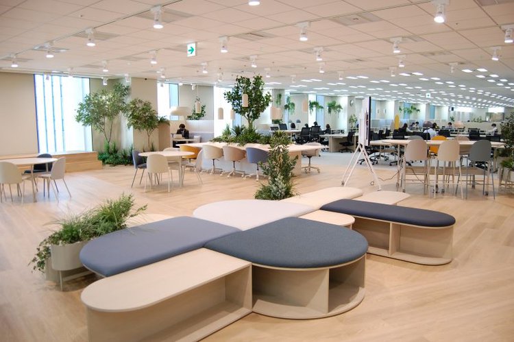 「集中」「リラックス」「コミュニケーション」などの機能を用途に合わせてカスタマイズできるオフィス家具コレクション「enKAK(エンカク)」を採用し、配線・照明・空調工事などが二度手間がかからないように設計されているため、用途に合わせて容易にアップデートすることも可能だ。