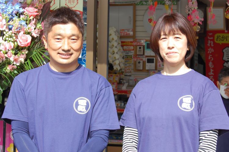 現在は、川名和章社長・尚美さんご夫妻、川名章夫会長・節子さんご夫妻、社員の吉澤富雄さん、ひまわりスタッフの岸奈々子さん、猪狩美津子さんの7名体制。「家電製品の販売を通じ、電気のホームドクターを目指し、お客様が快適な生活をおくれるよう、夢の実現に貢献する」という経営理念を掲げ、約700世帯の地域のお客様をフォローする。