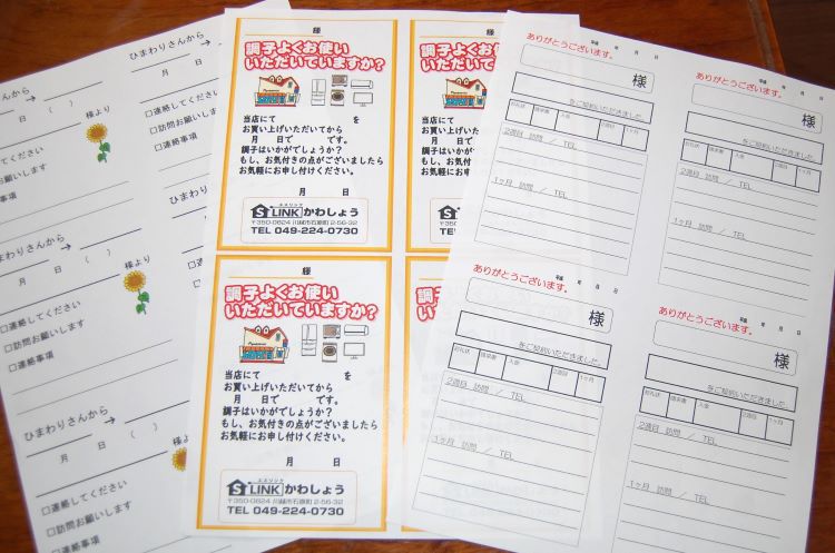 地域のお客様との絆を深めていく上で、地道なコミュニケーションで支えるひまわりスタッフの存在も見逃すことはできない。サービスやセールの情報を伝えるかわら版やチラシを、足を使って定期的にお客様のもとへお届けする。コロナ禍でお客様訪問がむずかしい時にも、ひまわりスタッフがひとりひとりのお客様に対して電話で丁寧に対応。近況や購入した商品の調子についてお聞きして、修理などの要望があれば素早く訪問できる態勢を整えている。